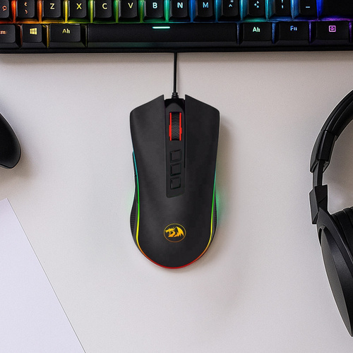 موس مخصوص بازی مدل REDRAGON M711 محصولی حرفهای از برند « ردراگون » (Redragon) است که برای کاربران علاقهمند به بازی طراحی و تولید شده است. در واقع این ماوس مشخصاتی دارد که آن را برای بازی کردن ایده ال میکند. از فاکتورهای خریدهای بسیار مهم هنگام تهیه ماوسهای گیمینگ میزان دقت و قابلیت کنترل دقت در آنها است. اگر شما به صورت حرفهای بازی میکنید یا قصد دارید یک گیمر حرفهای باشید باید از لوازم مخصوص بازی استفاده کنید. ماوس و کیبورد مهمترین ابزار یک گیمر محسوب میشود. ماوس و کیبورهای بازی علاوه بر ظاهر در عملکرد و کیفیت هم با ماوس و کیبورد ساده تفاوتهای زیادی دارند. شما میتوانید از ماوس بازی برای کاربریهای روزمره استفاده کنید اما استفاده از ماوس عادی برای بازی کار عاقلانهای نیست. یکی از برندهایی که در زمینه تولید ماوس برای بازی فعالیت دارد، ردراگون است. ماوس مخصوص بازی مدل M711 یکی از محصولات این برند معتبر است. موس مخصوص بازی مدل REDRAGON M711. اولین نکته و تفاوتی که ماوس بازی با ماوس ساده داشته ظاهر آن است. این مدل هم ظاهری متفاوت با ماوسهای ساده دارد. برای طراحی این ماوس از طراحی مدرن و خطهای شکسته نامتقارن استفاده شده است. ردراگون تلاش کرده تا علاوه بر ظاهر جذاب، استفاده از ماوس هم برای گیمر آسان باشد. همین باعث شده تا نحوه قرارگیری کلیدها و شکل کلی ماوس برای یک گیمر استاندارد است. شاید در نگاه اول تصور کنید استفاده از این طرحها برای زیبایی بیشتر باشد اما اینطور نیست. گیمرها ساعتها مشغول بازی کردن هستند و استرس و هیجان زیاد باعث عرق کردن دست میشود. هنگامی که دست عرق کند استفاده از ماوس سخت شده و میتواند تاثیر بسیاری روی بازی داشته باشد. ردراگون برای مدل M711 از سیم به طول 1.8 متر استفاده کرده است. اگر گیمر حرفهای باشید حتما میدانید استفاده از سیم بسیار بهتر از ماوس بیسیم بوده یکی از دلایل آن نبود تاخیر است. اتصال بیسیم در بهترین حالت هم در اجرای دستور تاخیر دارد. شاید در حالت عادی این تاخیر بسیار نامحسوس باشد اما برای یک گیمر حرفهای حتی چند صدم ثانیه هم اهمیت دارد. برای اتصال این ماوس از پورت USB استفاده شده است. برخلاف ماوسهای قدیمی که پورت پی اس/2 داشتند امروزه تمامی لوازم گیمرها به USB مجهز شده اند. . طول کابل این مدل 1.8 متر است