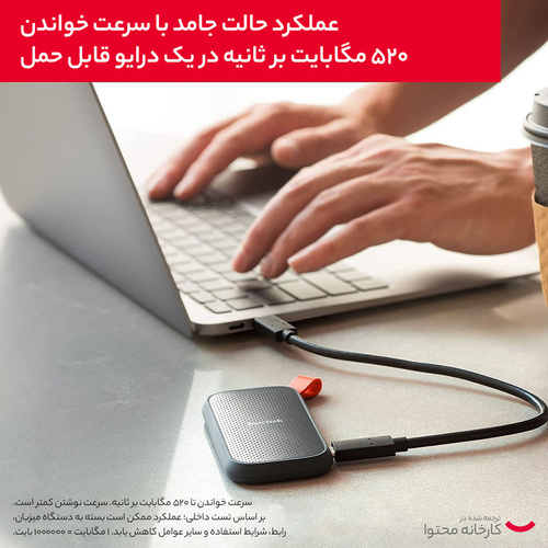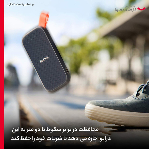 عملکرد سریع حالت جامد را با سرعت خواندن 520 مگابایت بر ثانیه در درایو قابل حمل دریافت کنید. (سرعت خواندن تا 520 مگابایت بر ثانیه. سرعت نوشتن کمتر. بر اساس آزمایش داخلی؛ عملکرد ممکن است بسته به دستگاه میزبان، رابط، شرایط استفاده و سایر عوامل کمتر باشد. 1MB=1,000,000 بایت.) از محتوا و خاطرات خود با یک راه حل ذخیره سازی پشتیبان تهیه کنید که به طور یکپارچه با سبک زندگی تلفن همراه شما مطابقت دارد. آن را در ماجراجوییهای خود با خود ببرید—محافظت در برابر سقوط تا دو متر به این معنی است که این درایو بادوام میتواند ضربهای به شما وارد کند. (بر اساس تست داخلی) برای آرامش بیشتر به لطف قلاب لاستیکی سخت، آن را به حلقه کمربند یا کوله پشتی خود محکم کنید.