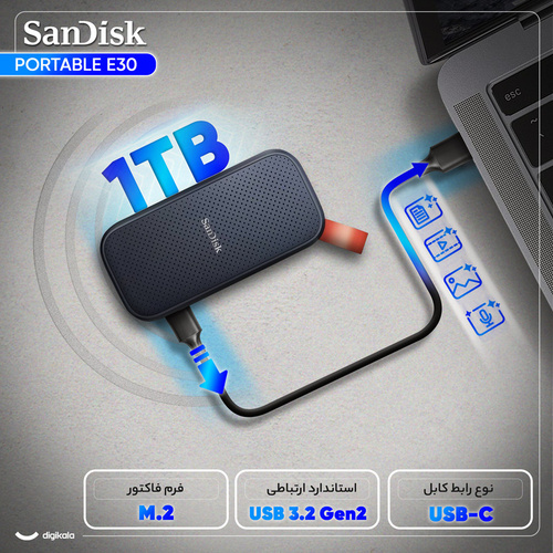 اس اس دی اکسترنال سن دیسک مدل PORTABLE E30 ظرفیت 1 ترابایت رابط USB 3.2 Gen2